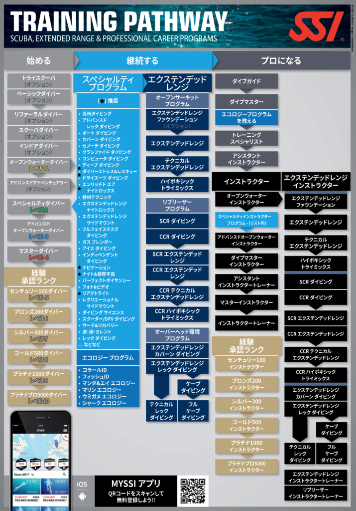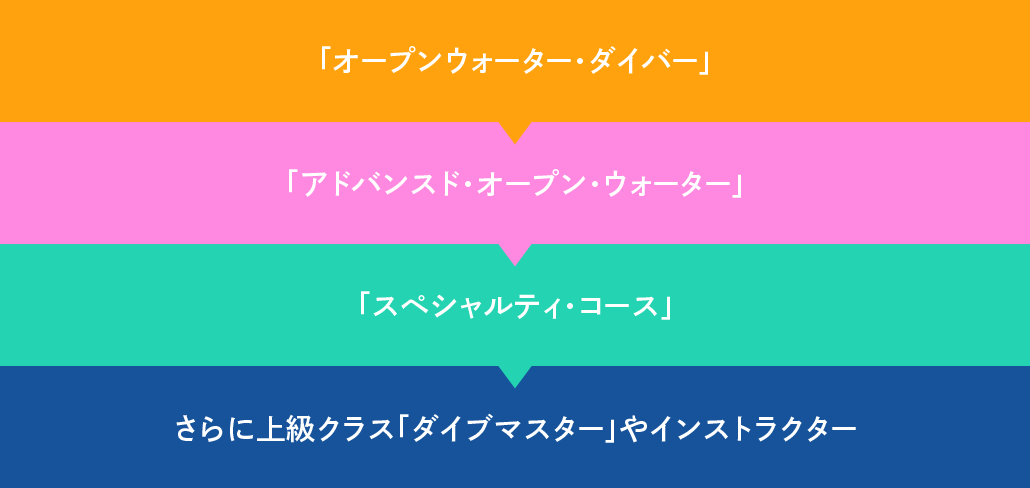 その後、さらに上級クラスの「ダイブガイド」やインストラクター、プロのクラスへ進んでいただくことができます。